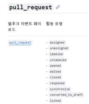 하지만 pull_request같은 경우에는 pull_request를 열었을 때, pull_request를 수정 했을 때, pull_request를 닫았을 때와 같이 여러한 행동들을 설정을 할수가 있다.